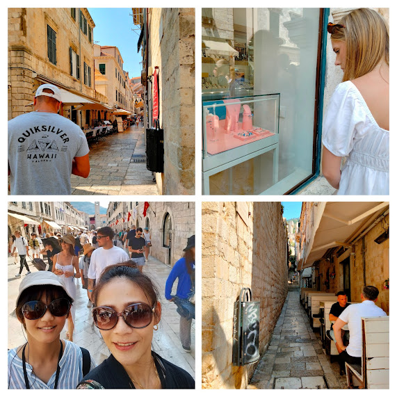 旧市街散策。まずはクロックタワーとオノフリオ噴水をつなぐメインストリートのStradun Dubrovnik。迷ったらこの道に出ればok!旧市街を横断する広ーい道です。道沿いには美しい建物にお店が立ち並び、ここだけでもドゥブロブニクを楽しめます。メインストリートから両サイドに何本もの細い小道が伸びており、裏通りは人通りが少なくて、情緒漂うヨーロッパを感じられます。