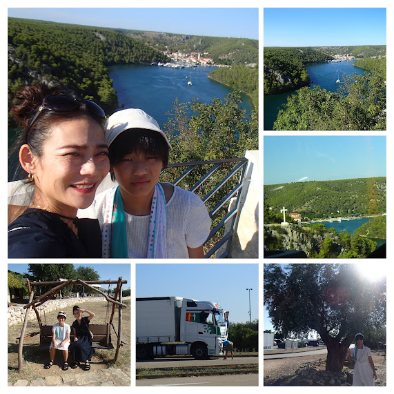 ザダルまでの道中、トイレに寄ったパーキング。ここからの眺めはSkradinの町が一望できる絶景で、運転手さんが教えてくれました。パーキング内には木でできたこんな可愛らしいブランコも。停車中のトラックの運転手さん、しゃがんだお尻が見えとるよ(笑)