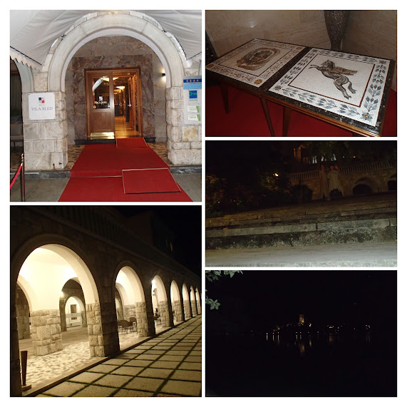 夜のブレッド湖へちょいと散策。真っ暗で何も見えない。。。でも、ホテルの外観は立派な石作りの塀と階段で、いかに歴史あるホテルかが分かります。調度品も重厚な作り。