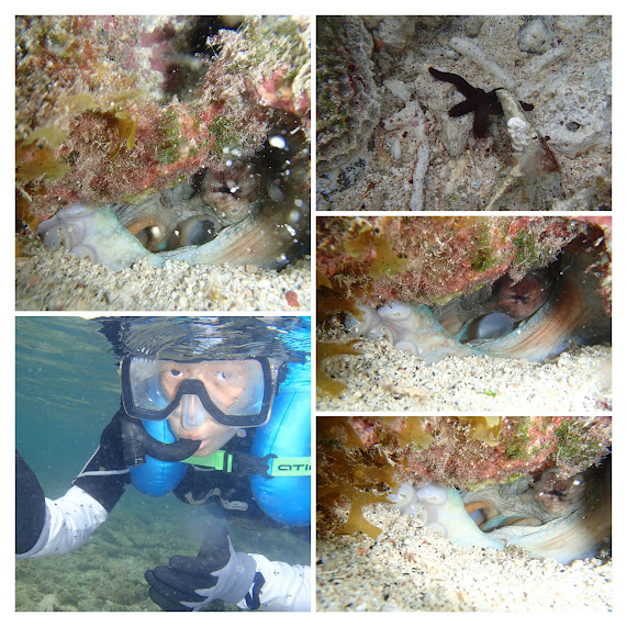 一番の大物はタコ!見つかるとすぐに珊瑚の隙間に隠れていきました。
