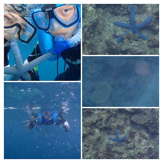 前日に引き続き潜入!やや潮位は上がったものの十分近くに珊瑚!青いヒトデもそこら中に。ちょっと抱っこさせて頂きハイチーズ!ウミウシ君もハイチーズ!泥棒みたいな顔をしたコクテンフグww