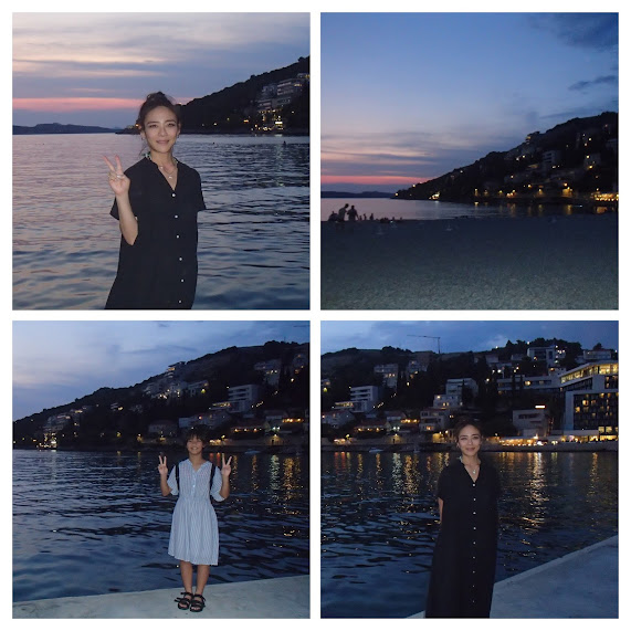 夕方ホテルに戻り、朝の散歩でも行ったサンセットビーチへ。日が落ちるのが遅いこの時期、20時半頃、名前通りの夕焼けが美しい!町の灯りと相まってなんて幻想的なんでしょう。