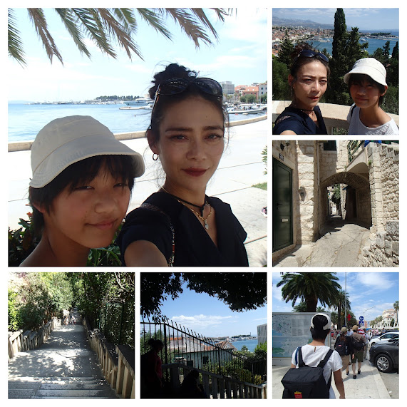 私たちはスプリトの港沿いSplit Rivaを歩き、世界最古と言われるユダヤ人墓地Old Jewish cemeteryまで軽いトレッキング。日本並みに暑く、日本以上に紫外線の強い昼間に、日光東照宮並みの階段Marjan Hill Stairsを上り、なんとか丘の上へ!港町スプリトを一望できる丘にはレストランもあり、多くの観光客が展望を楽しんでいました。
