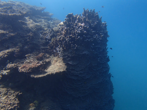ここはリーフの珊瑚の種類が豊富でソフトコーラルもありました。トンネルも多数で、トンネル潜りをする人にはいいポイントかも。アウトリーフがとっても綺麗でした。