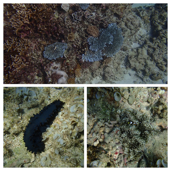 海の中は結構沖まで出ましたが、ほとんどの珊瑚は黒く死んでいてかろうじてニモ1家族とナマコ。魚もほとんどいません。小一時間調査して上がりました。